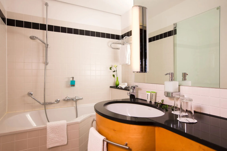 В отеле LindnerCongressвы можете забронировать один из 254 номеров. В ванных комнатах есть ручной душ и совмещенная с душем ванна.