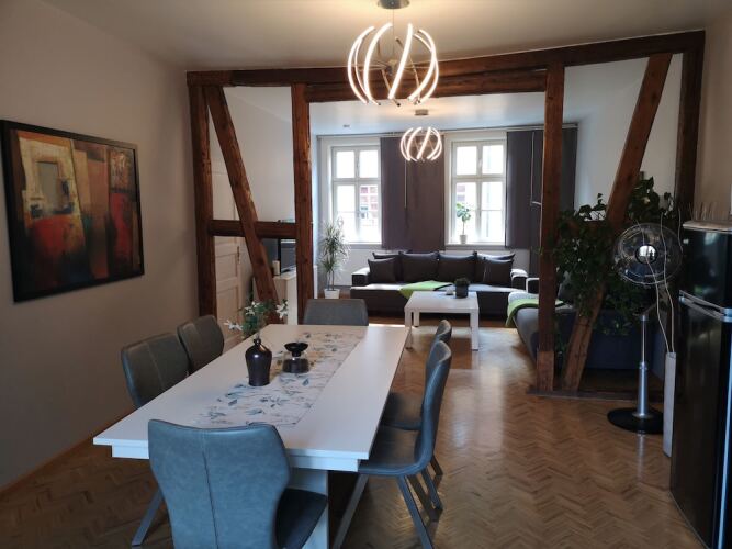 Отель Ferienwohnung Junger Moritz, адрес на карте Эрфурт, Moritzstr. 35, с описанием номеров и возможностью онлайн бронирования на площадке vashotel.ru , цены проживания и удобства.