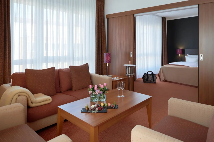 Отель Dorint Hotel am Dom Erfurt, адрес на карте Эрфурт, Theaterplatz 2, с описанием номеров и возможностью онлайн бронирования на площадке vashotel.ru , стоимость проживания и удобства.