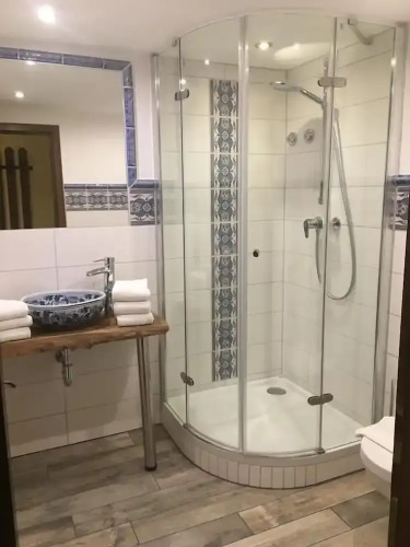 В номере вы найдёте душ и телевизор. Оснащение зависит от выбранной категории номера.