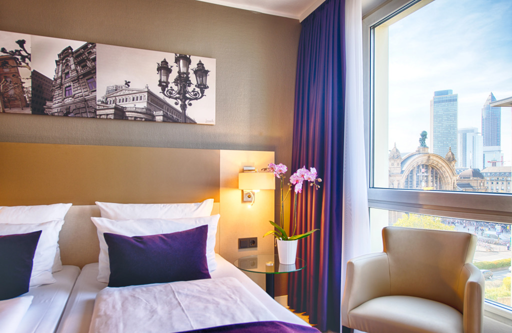 В трехзвездочном отеле Leonardo Frankfurt City Center 106 номеров с видом на город. В каждом номере есть кондиционер, сейф, фен, собственная ванная комната и кофеварка или чайник. Гостям также предлагается спутниковое телевидение и возможность просмотра платных фильмов.