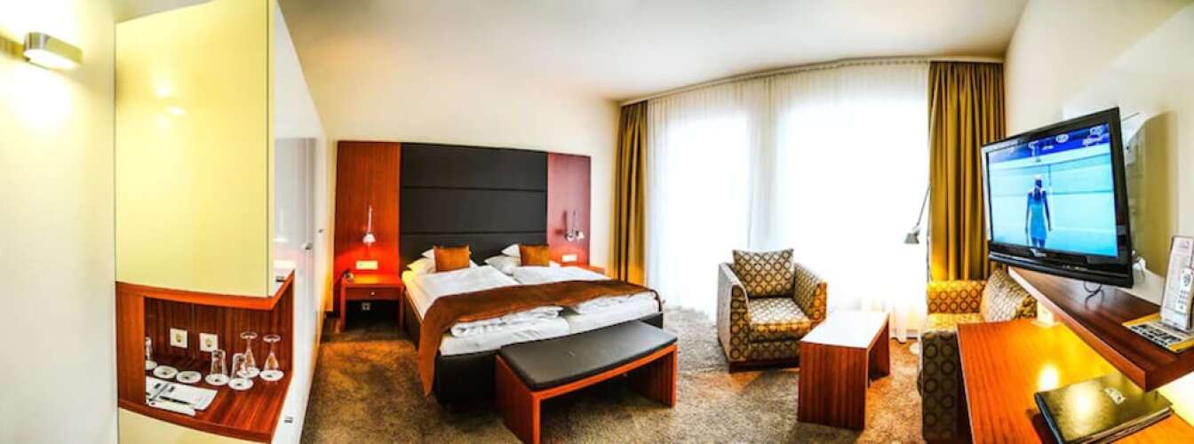 В номере вы найдёте телевизор, мини-бар и тапочки. Перечисленные услуги есть не во всех номерах.