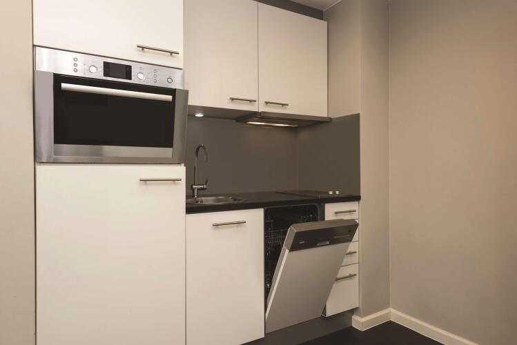 Во всех номерах есть кабельное телевидение, а также проводной и беспроводной доступ к высокоскоростному Интернету — за дополнительную плату. В номерах установлен телефон с прямым набором номера. Во всех номерах есть кухня с холодильником и всем необходимым оборудованием, включая микроволновую печь и посудомоечную машину. Все номера — для некурящих.