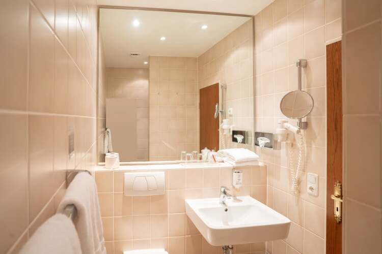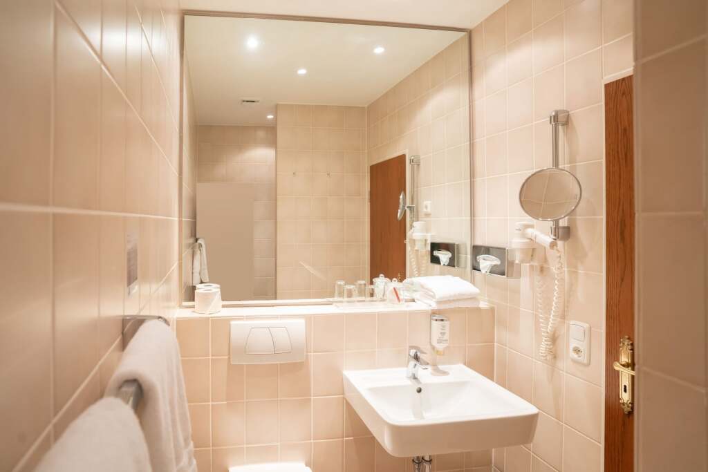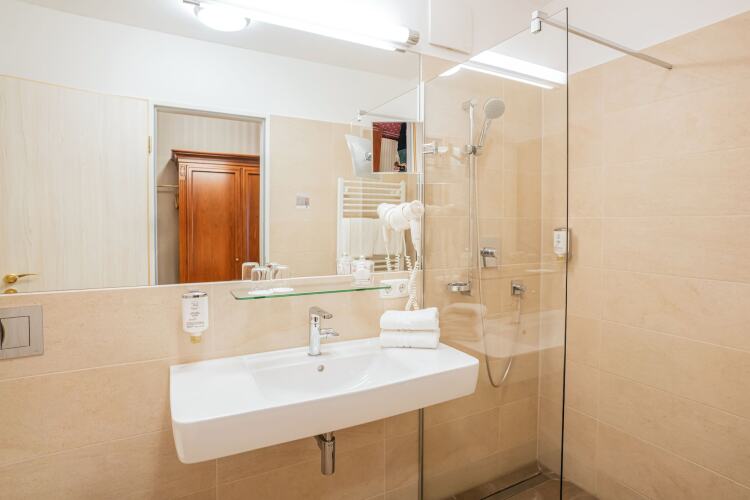 В номере вы найдёте душ и телевизор. Оснащение зависит от выбранной категории номера.