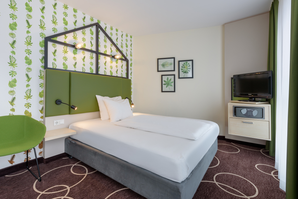 Отель Mercure Hotel Hannover Mitte располагает 171 современными и уютными номерами, в каждом из которых есть кондиционер, платный Wi-Fi, сейф, письменный стол и телевизор с возможностью просмотра спутниковых каналов, в том числе и на русском языке. По запросу предоставляются детские кроватки и дополнительные спальные места.