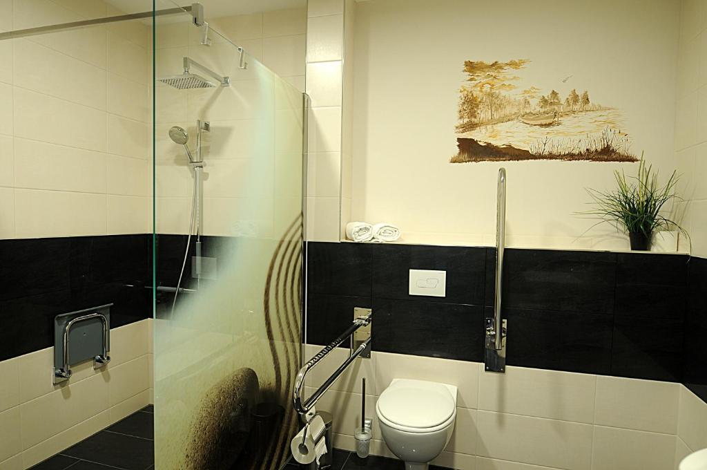 В номере вы найдёте душ и телевизор. Оснащение зависит от выбранной категории номера.