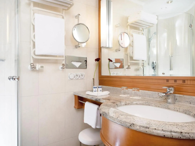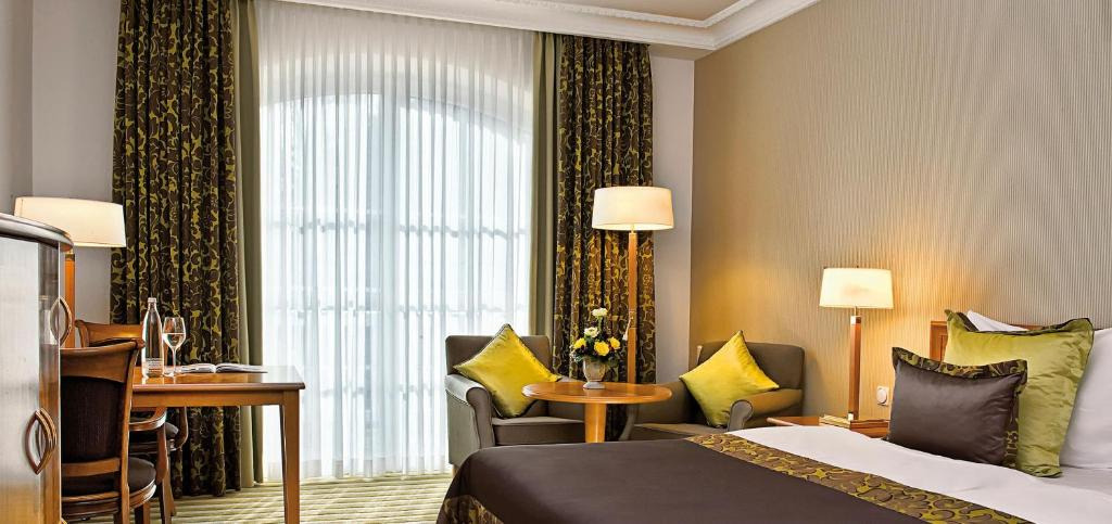 В любом из 143 номеров отеля есть телевизор с возможностью просмотра спутниковых каналов, прямой городской телефон и доступ в интернет, имеются сейф, кондиционер и минибар. По запросу предоставляются раскладные и детские кровати.