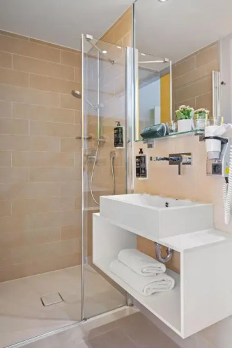 В номере вы найдёте душ и телевизор. Оснащение зависит от выбранной категории номера.