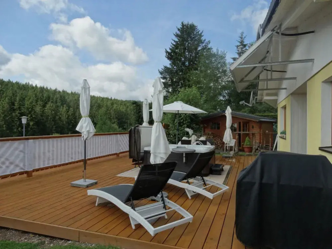 Отель Cozy Holiday Home in Lenzkirch With Whirlpool 4 звезды, адрес на карте Ленцкирх, Finkenweg 6, с характеристиками номеров и доступностью онлайн бронирования на ресурсе vashotel.ru , цены проживания и удобства.