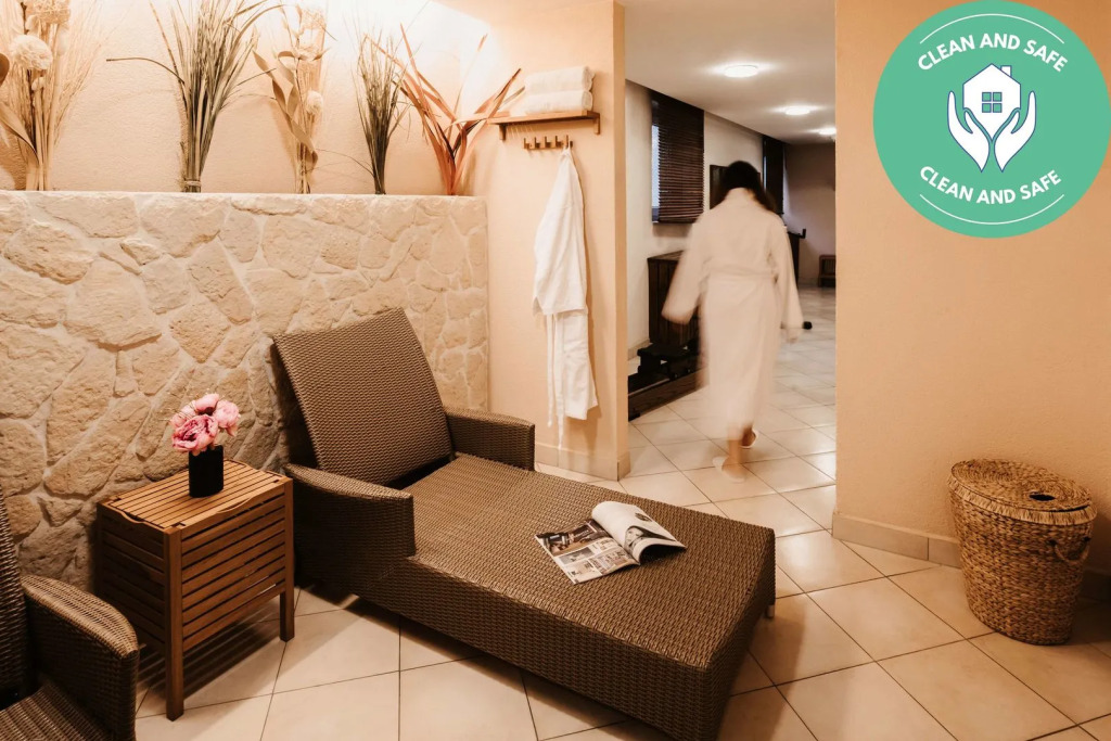 Среди услуг для красоты и здоровья — сауна. Любителям спорта подготовили фитнес-центр, тренажёрный зал и мини-гольф. Готовьтесь к весёлому и насыщенному отдыху! На территории есть боулинг. Любители водных процедур оценят бассейн.