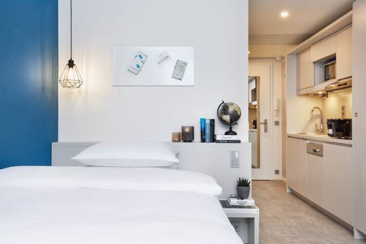 Отель H.ome Serviced Apartments München, адрес на карте Мюнхен, Am Oberwiesenfeld 7, с характеристиками номеров и доступностью онлайн бронирования на площадке ВашОтель.RU , цены проживания и удобства.