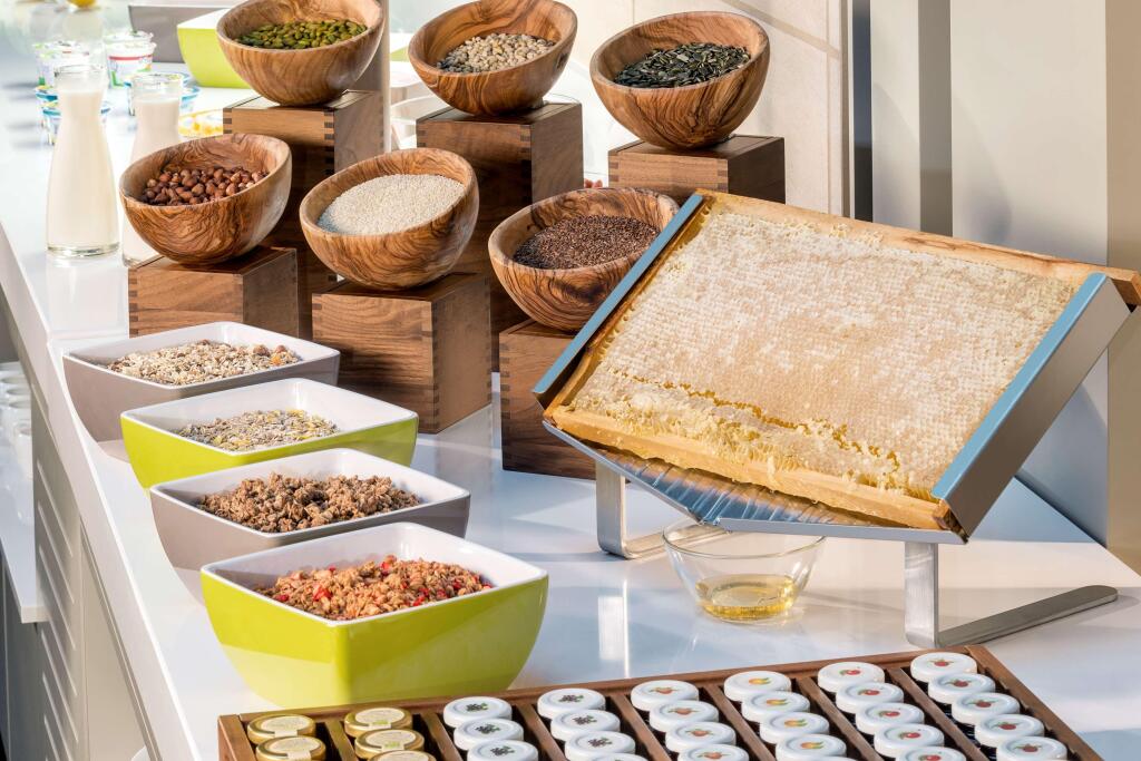 Утром для гостей отеля сервируется завтрак «шведский стол». В течение дня гости могут попробовать различные напитки и закуски в лаундж-баре отеля или прогуляться и пообедать в одном из многочисленных кафе и ресторанов поблизости.