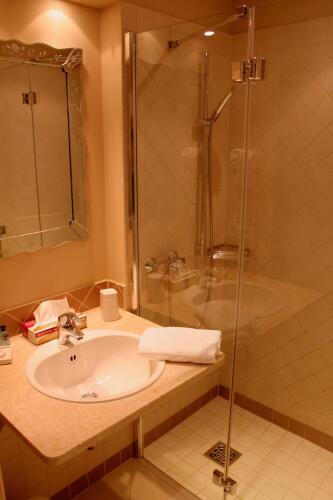 В номере вы найдёте душ и телевизор. Оснащение зависит от выбранной категории номера.