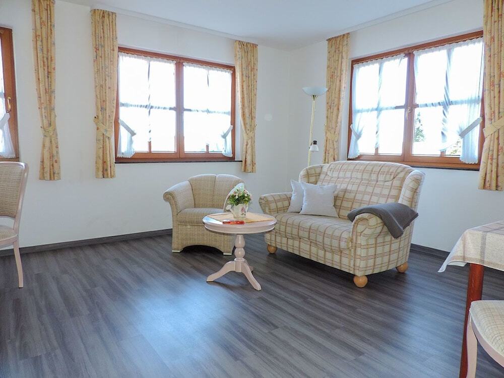 Апарт - отель Landhausferienwohnungen Am Brockenblick идеально подходит для размещения бизнес-туристов, индивидуальных путешественников, семей с детьми, ценящих комфорт и качество. Изысканно приготовленными блюдами национальной и международной кухонь гости могут насладиться в ресторане отеля с террасой на крыше.
