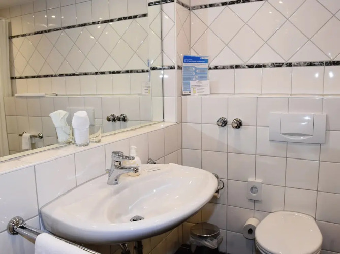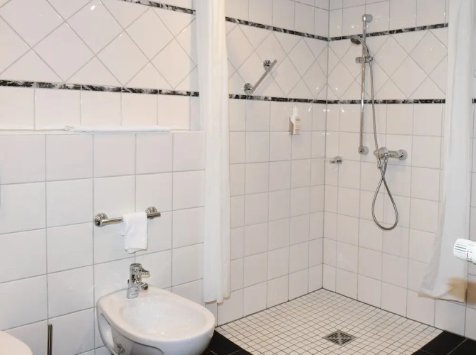 В номере вы найдёте душ, халат и тапочки. Перечисленные услуги есть не во всех номерах.