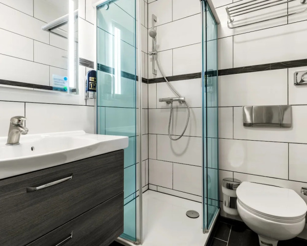 В номере вы найдёте душ и телевизор. Оснащение зависит от выбранной категории номера.