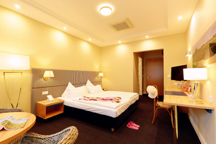 В номере гостей ждут телевизор и мини-бар. Оснащение зависит от выбранной категории номера.