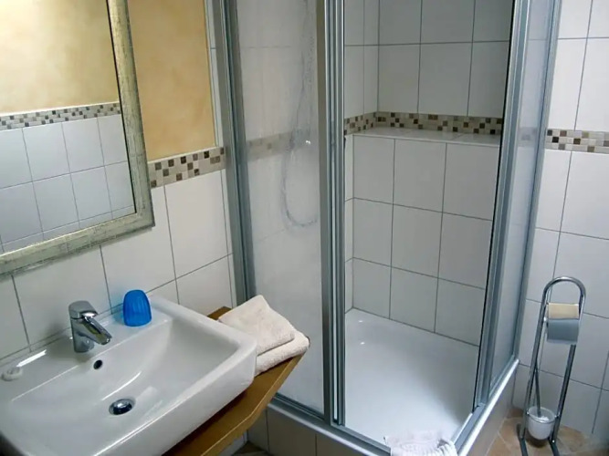 В номере вы найдёте душ и телевизор. Оснащение зависит от выбранной категории номера.