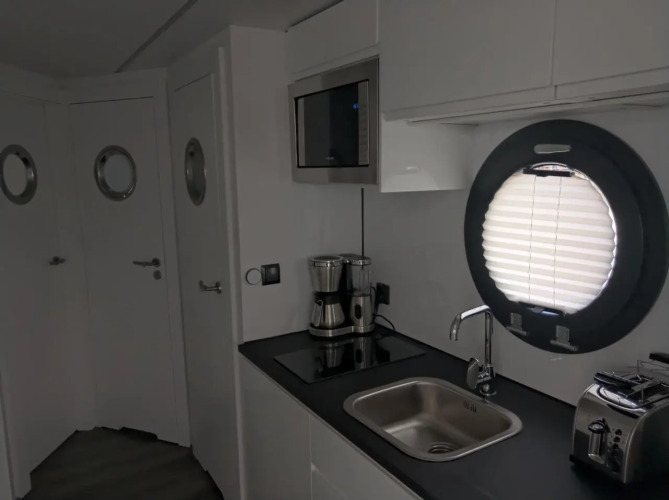 Отель Ostsee Hausboot Schleswig Ostseeblick 2, адрес на карте Шлезвиг, Am Hafen 5, Schleswig, с характеристиками номеров и доступностью онлайн бронирования на ресурсе vashotel.ru , стоимость проживания и удобства.