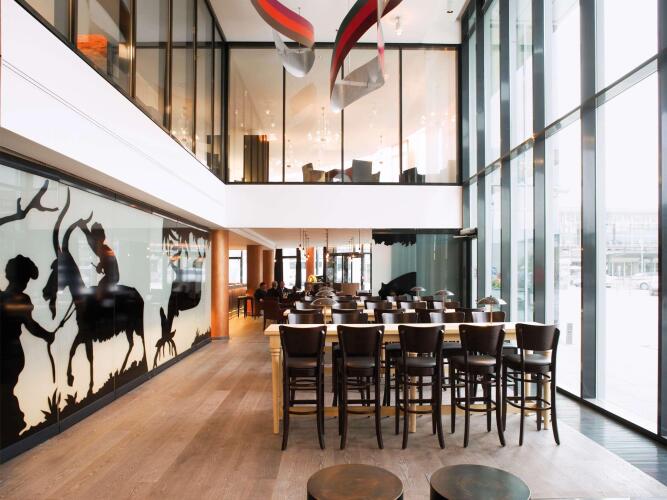 Отель Mövenpick Hotel Stuttgart Airport 4 звезды, адрес на карте Штутгарт, Flughafenstrasse 50, с описанием номеров и доступностью онлайн бронирования на сайте ВашОтель.RU , цены проживания и удобства.