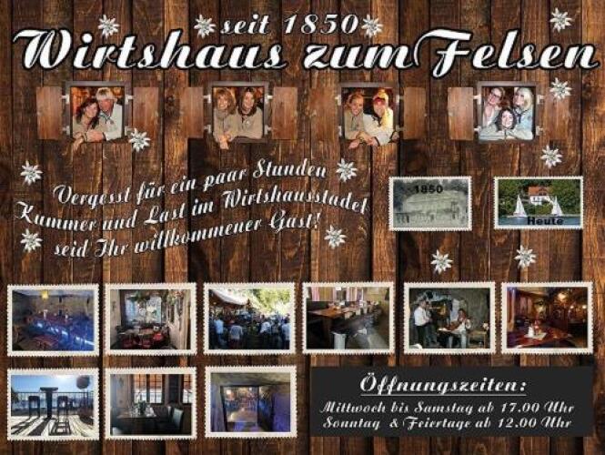 Please inform Gästehaus zum Felsen in advance of your expected arrival time. You can use the Special Requests box when booking, or contact the property directly with the contact details provided in your confirmation. This property will not accommodate hen, stag or similar parties. It is not possible to stay at this property for Coronavirus (COVID-19) quarantine purposes. Wirtshaus zum Felsen is closed from Tue 31 Oct 2023 until Thu 16 Nov 2023 Bar is closed from Tue 31 Oct 2023 until Thu 16 Nov 2023 Our restaurant will be open in 2023 as follows! Friday and Saturday from 5 p.m. Sunday from 12 p.m