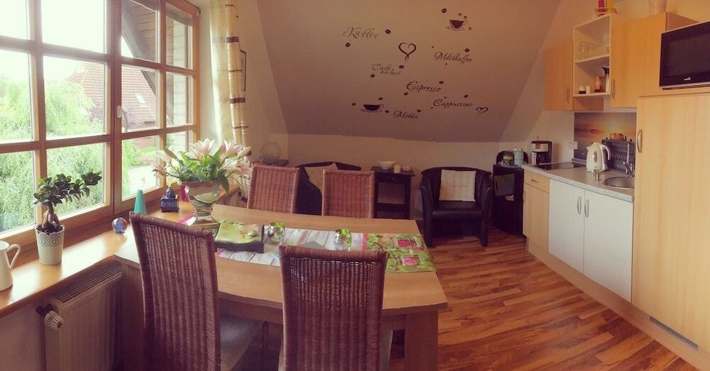 Отель Ferienwohnungen in der Villa Eule 3 звезды, адрес на карте Фарел, Eulenweg 13 A, с описанием номеров и доступностью онлайн бронирования на ресурсе vashotel.ru , стоимость проживания и удобства.