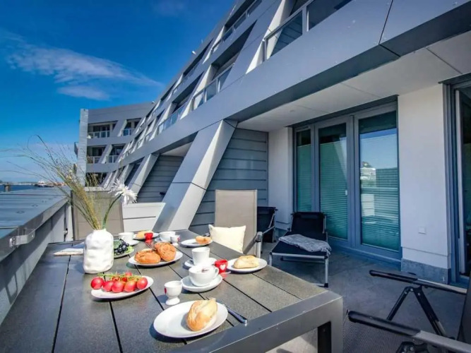 Подходящий вариант для большой компании: апартаменты «Hafenspitze App 09» располагаются в Висмаре. Эти апартаменты находятся в пешей доступности от центра города. Рядом с апартаментами можно прогуляться. Неподалёку: Порт Висмар, Schabbellhaus и Церковь Святого Духа.