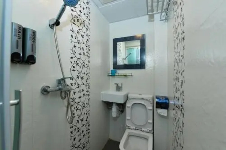 В номере вы найдёте душ, телевизор и тапочки. Оснащение зависит от выбранной категории номера.
