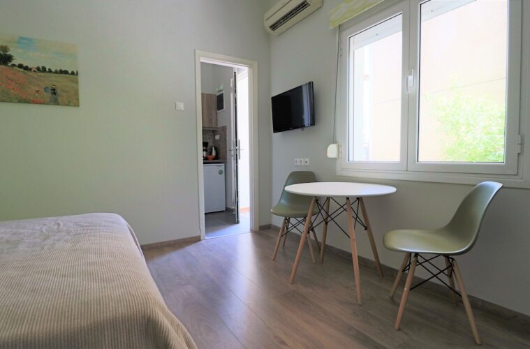 Отель Athens City Studios, адрес на карте Афины, 5 Evaggelou Giannari, Athens, 11853, Greece, с характеристиками номеров и доступностью онлайн бронирования на площадке vashotel.ru , цены проживания и удобства.