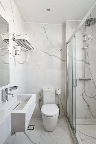 В отеле Athos для гостей 18 просторных номеров улучшенной планировки, каждый из них оснащен всем необходимым для туристов, а именно телевизором, мини-баром, сейфом, кондиционером, высокоскоростным бесплатным проводным интернетом, телефоном. В ванных комнатах есть фен и набор туалетных принадлежностей.
