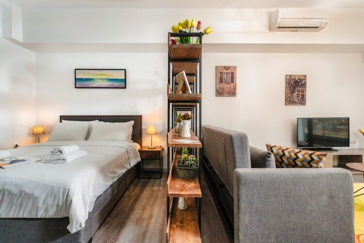 Отель Sanders Home Suites - Inviting Downtown Studio, адрес на карте Афины, 52 Mavromichali, с описанием номеров и доступностью онлайн бронирования на сайте ВашОтель.RU , стоимость проживания и удобства.