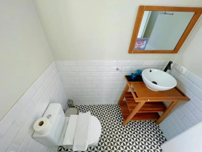 В номере вас будут ждать душ, телевизор и тапочки. Оснащение зависит от выбранной категории номера.