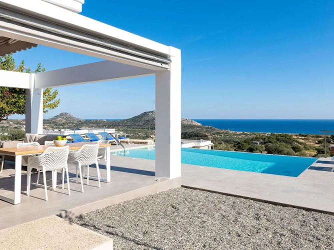 Отель Sea View Villa in Kalythies with Private Pool near 3 Beaches, адрес на карте Афанду, Kokkinagremos, с характеристиками номеров и правом онлайн бронирования на ресурсе vashotel.ru , стоимость проживания и удобства.
