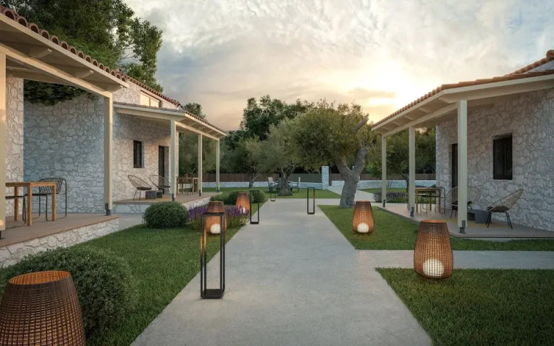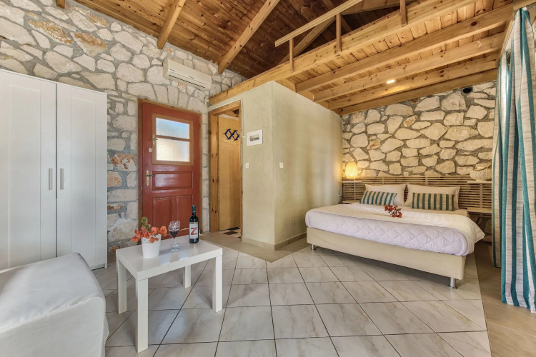 Отель Evylio Stone Houses, адрес на карте Лаганас, Agios Sostis, с характеристиками номеров и правом онлайн бронирования на площадке vashotel.ru , стоимость проживания и удобства.