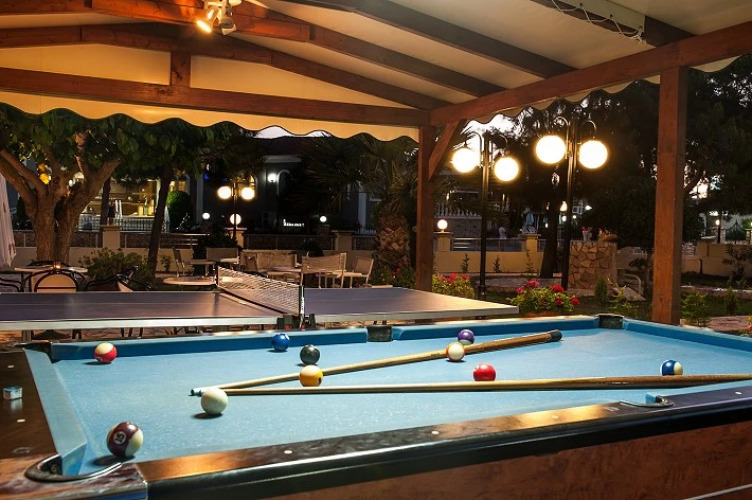 Среди развлечений на территории — библиотека. Здесь будем баловать себя водными процедурами: есть бассейн и открытый бассейн. Удобно для гостей с ограниченными возможностями: на верхние этажи гостей поднимает лифт. Дополнительно: прачечная, прокат автомобилей и сейф.