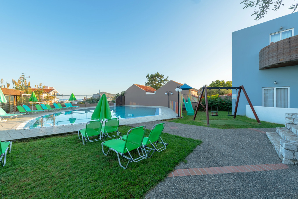 Подходящий вариант для бюджетного отдыха — отель «Iolida Village» располагается в Агии Марине. Этот отель находится в самом центре города. Перед сном есть возможность прогуляться вдоль главных достопримечательностей. Рядом с отелем — Пляж Агия Марина, Пляж Трулакис и Частный Пляж Отеля «Минерва Бич».