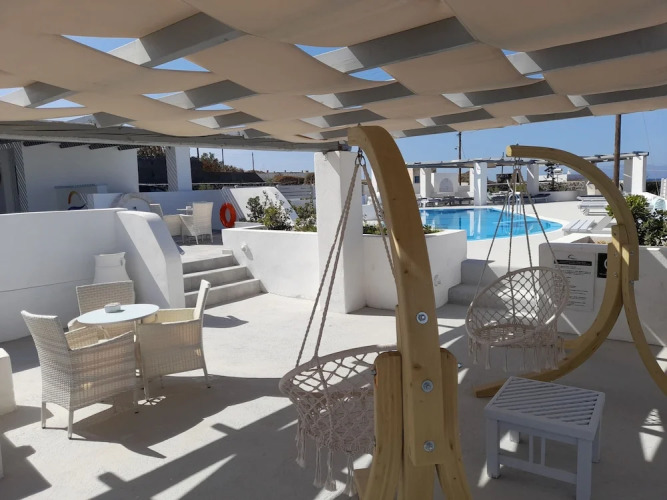 Подходящий вариант для бюджетного отдыха — отель «Sea paradise villas» расположен в Финикье. Этот отель находится неподалёку от центра города. Рядом с отелем — Пляж Baxedes, Старый порт Санторини и Порт Афиниос Санторини.