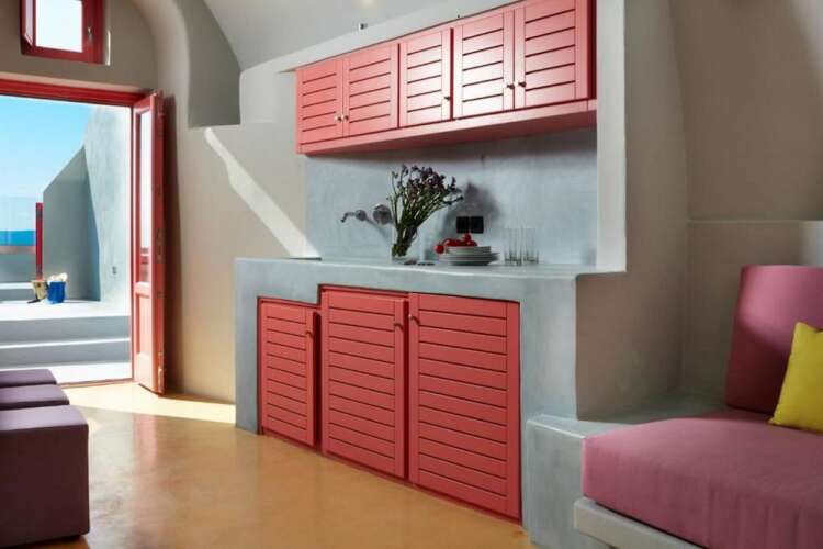 Отель Caldera Esprit Suites, адрес на карте Санторини, Fira Gold Street, с описанием номеров и доступностью онлайн бронирования на ресурсе vashotel.ru , стоимость проживания и удобства.