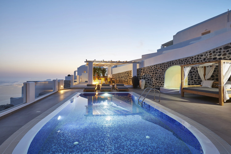 Из такого отеля на улицу можно вообще не выходить — отель «Celestia Grand» расположен в Фире. Этот отель находится 2 км от центра города. Рядом с отелем можно прогуляться. Неподалёку: Порт Афиниос Санторини и Старый порт Санторини.