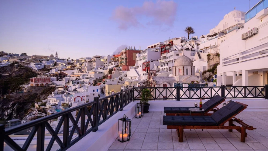 Отель Firalia, Casa In Rock Suites, адрес на карте Санторини, Fira Caldera, Fira, с описанием номеров и возможностью онлайн бронирования на ресурсе ВашОтель.RU , стоимость проживания и удобства.