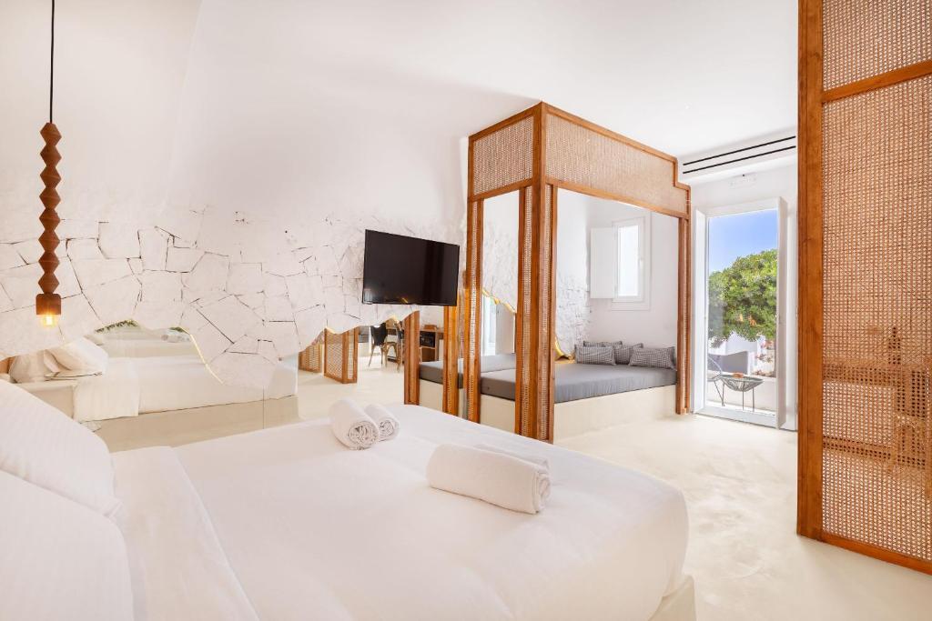 Отель Faos Exclusive Suites, адрес на карте Остров Миконос, Ornos, с описанием номеров и правом онлайн бронирования на площадке vashotel.ru , стоимость проживания и удобства.