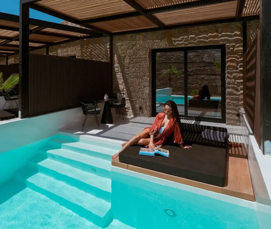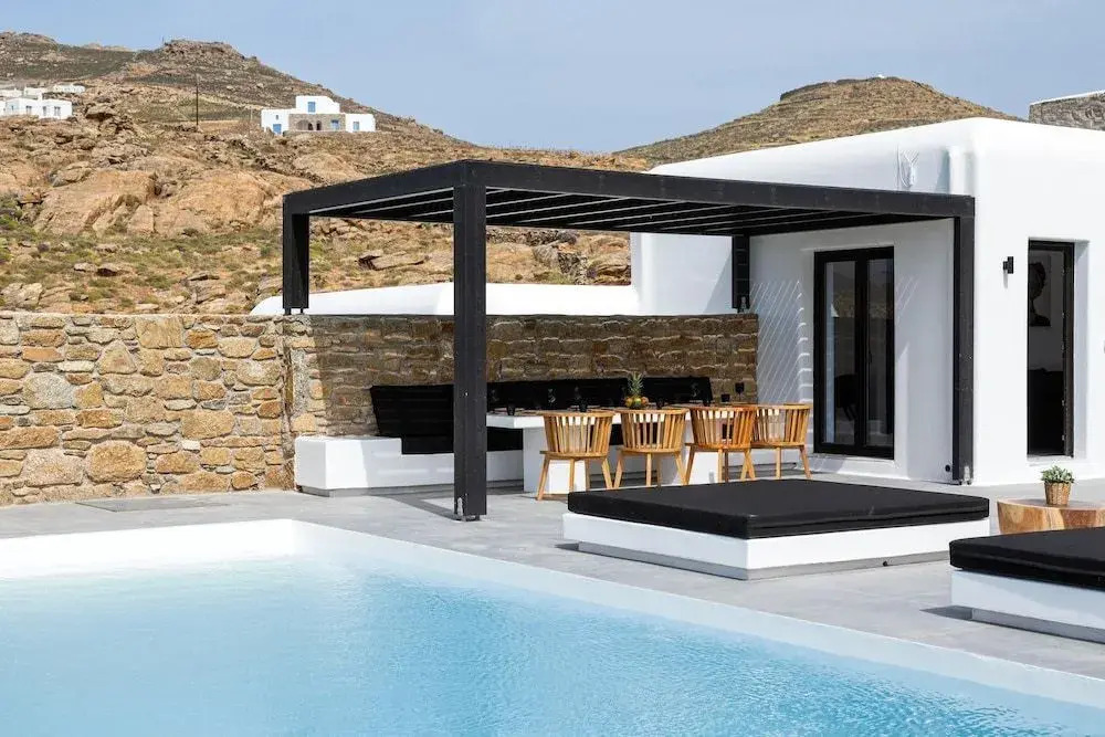Отель Ftelia Black Villas, адрес на карте Остров Миконос, Ftelia Beach, с характеристиками номеров и правом онлайн бронирования на площадке ВашОтель.RU , цены проживания и удобства.
