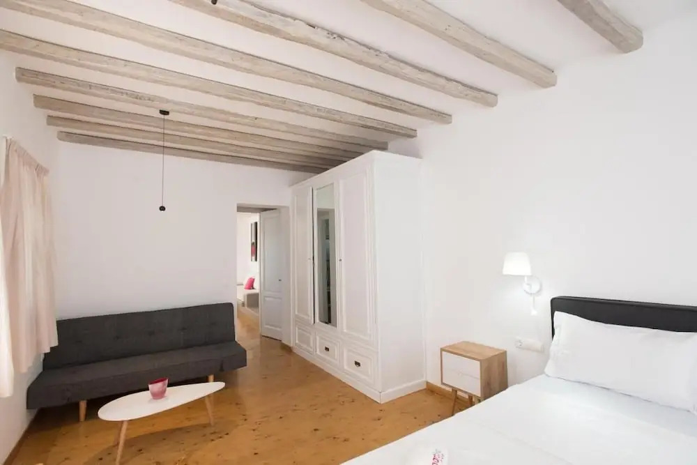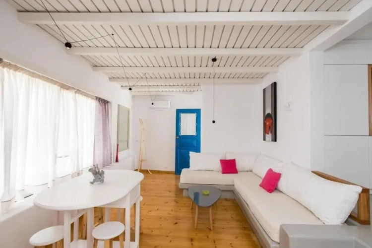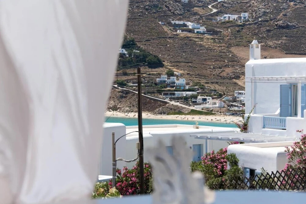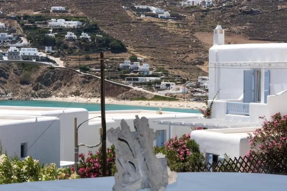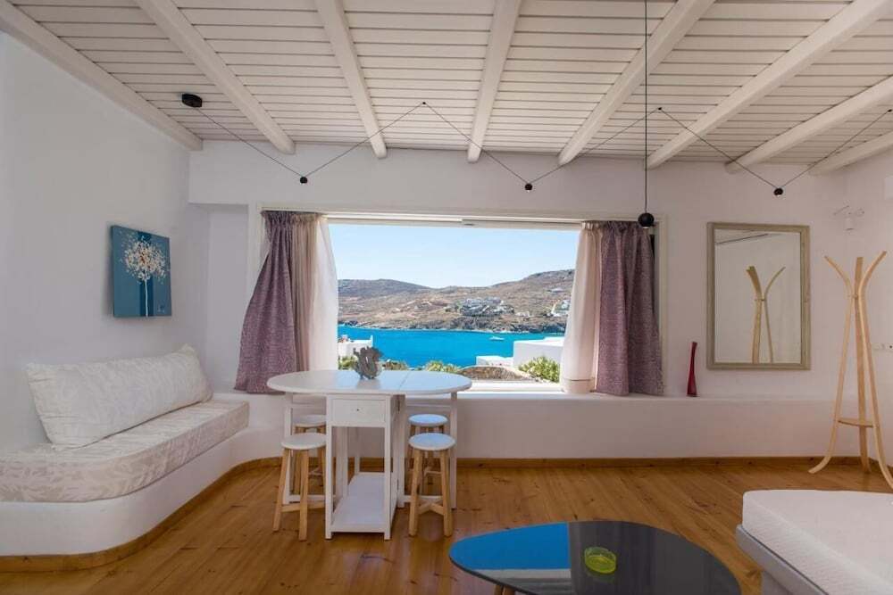 Отель Luxury Sea View Apartment w shared pool, адрес на карте Остров Миконос, Kalo Livadi, с характеристиками номеров и правом онлайн бронирования на сайте vashotel.ru , стоимость проживания и удобства.