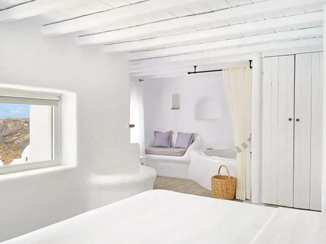 Отель Mykonos Lolita, A Grecotel Resort To Live, адрес на карте Остров Миконос, Agios Sostis, с описанием номеров и доступностью онлайн бронирования на ресурсе vashotel.ru , стоимость проживания и удобства.