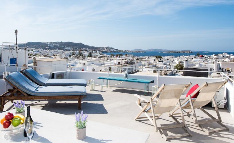 Отель Mykonos Town Panorama, адрес на карте Остров Миконос, Mykonos Town, с описанием номеров и доступностью онлайн бронирования на площадке vashotel.ru , цены проживания и удобства.