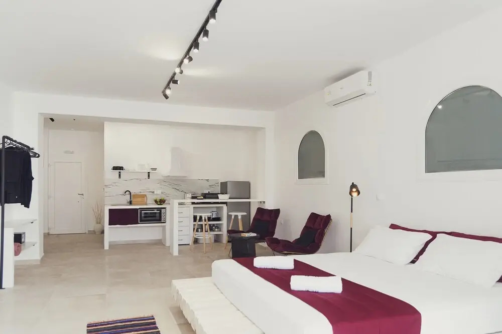 Отель The Greco Suites, адрес на карте Кавос, kavos, с описанием номеров и возможностью онлайн бронирования на ресурсе vashotel.ru , цены проживания и удобства.