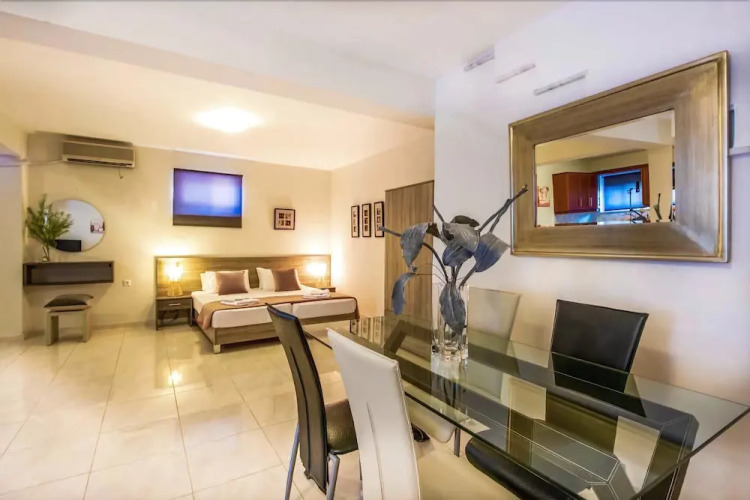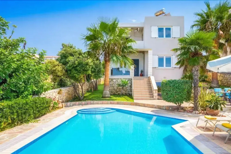 Отель Villa Minos, адрес на карте Kokkino Chorio, Plaka, 73008, Greece, с описанием номеров и доступностью онлайн бронирования на сайте vashotel.ru , цены проживания и удобства.