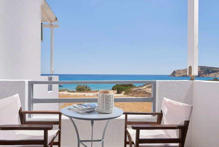 Подходящий вариант для бюджетного отдыха — отель «Muses Milos» находится в Проватасе. Этот отель расположен в центре города. Утром — выпейте кофе, наблюдая из окна за жизнью города.