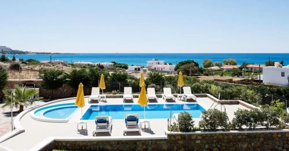 Отель Pefki Sea View Villas Rhodes Six-bedroomed Villa for up to 12 People With Private Pool 3 звезды, адрес на карте Пефкос, 2nd Kilometer Pefkos - Lardos Road, с описанием номеров и правом онлайн бронирования на ресурсе ВашОтель.RU , цены проживания и удобства.