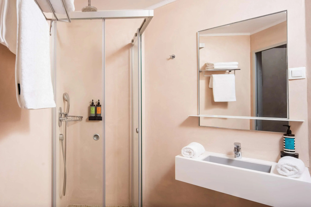 Отель Corissia Beach предлагает забронировать 77 светлых и просторных номеров с прекрасными видами на море или центральную площадь. Помимо кондиционера и отдельной ванной комнаты в них есть кабельное ТВ, телефон, холодильник, фен и сейф, воспользоваться которым можно за дополнительную плату.